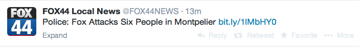 The difference between public and commercial media, illustrated in two easy Tweets Leave a reply From the fine folks at VPR: Aaaaand the same story, courtesy of the fearmongers at Fox 44: ‘Nuff said. Share this: Click to share on X (Opens in new window) X Click to share on Facebook (Opens in new window) Facebook Like Loading...