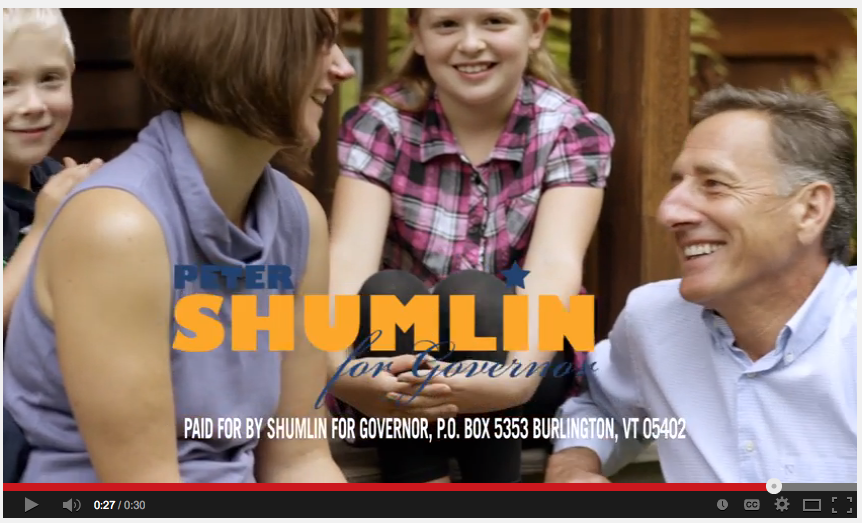 The Shumlin campaign has taken to the airwaves with a 30-second commercial that features real-life Vermonters who have benefited from Shumlin initiatives. The aim of the ad is to remind viewers of the administration’s many accomplishments — to counteract the stream of bad news about Vermont Health Connect and the Department of Children and Families, and to remind liberal voters that the Governor has, indeed, delivered on many of his promises.