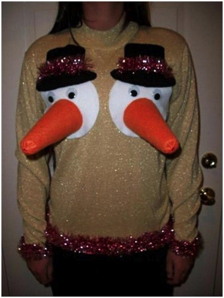 Because remember, nothing says “dignity” like a sweater with comical boobies.