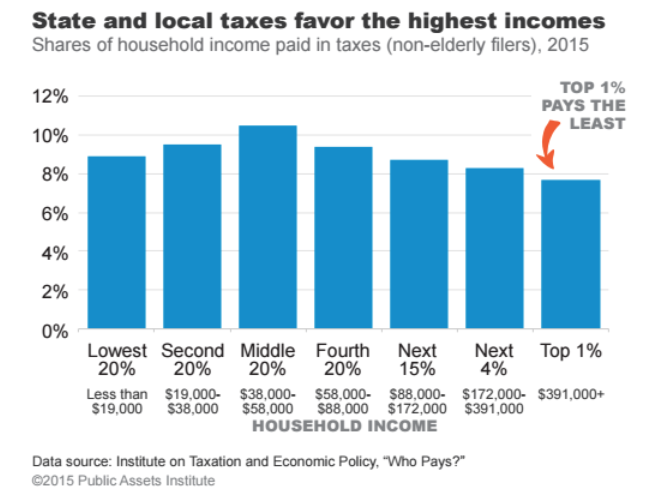 The lag in middle- and working-class income has several effects. First, total state and local tax receipts are lower because our tax system comes down most heavily on the middle.