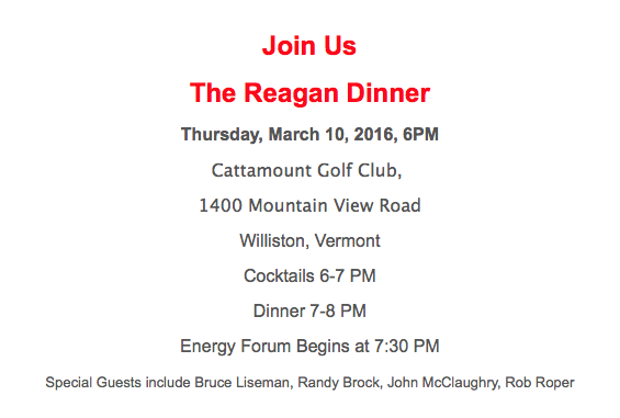 Yup: Cocktails, dinner, and an “Energy Forum,” Lord help us all. Doesn’t look like they’ll have any high-profile out-of-state guests; the dinner is being artfully held the week following the Vermont primary, so I’m sure we won’t get any presidential candidates on the dais.