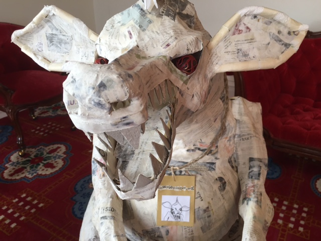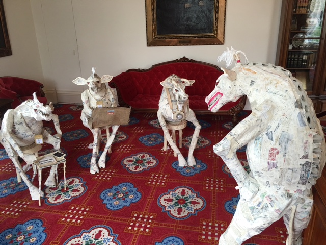 That’s the lesson I drew from Katie Hunt’s art installation, on display in hubby’s ceremonial office at the Statehouse. There are two works, each comprised of a set of papier mache figures. And it’s hard not to see them as Hunt’s own personal Festivus celebration with the Vermont media as the recipient of her Airing of Grievances.