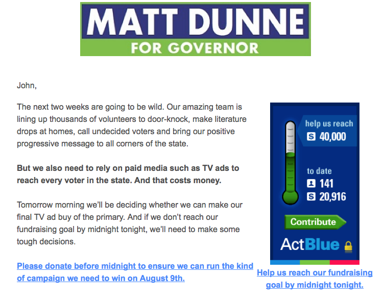 You’ve got to hand it to Matt Dunne. If my email inbox is anything to judge by, he’s got the most active, persistent fundraising operation of any gubernatorial candidate.