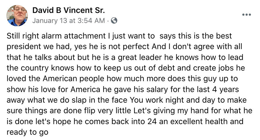 > John S. Walters posted: ” Hey everybody, meet David B. Vincent Sr., > resident of Georgia, Vermont and candidate for town Selectboard. He’s > running against former state representative and senator Carolyn Branagan. > And I’m going to take you on a merry tour of his Facebook page. ” >