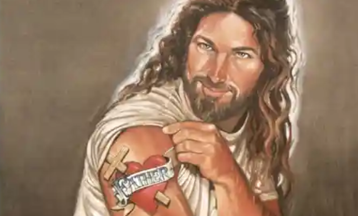There’s a lot of talk these days about information bubbles like Fox News, Newsmax, and the sludge pits of Facebook. But the original, biggest, and baddest information bubble of them all surrounds white evangelicalism. For decades, white evangelicals have existed in their own cultural ecosystem, with their own churches and schools and universities and books and movies and music (ever heard Christian rap?) and cartoons. And artists like Stephen Sawyer, who created the above depiction of the Lamb of God as a tattooed he-man. Biker Jesus?