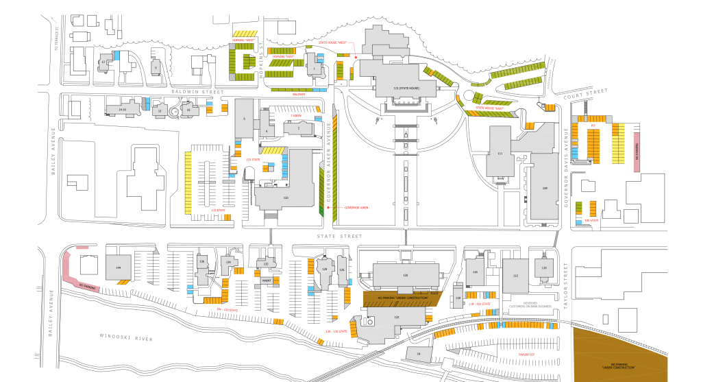 Take, for example, security in Montpelier’s Capitol Complex. The map above shows it almost exactly. The borders, more or less, are the Winooski River in the south, Bailey Avenue on the west, Terrace Street and somewhere behind the Statehouse on the north, and Governor Aiken Street/Taylor Street to the east. It’s a mix of state buildings, privately owned buildings, lawns and parking lots. The state properties include all three branches of government plus offices for statewide elected officials.