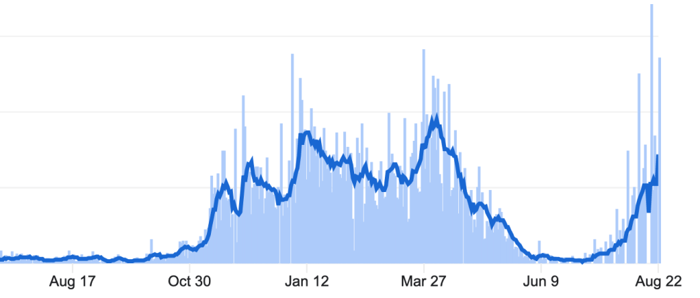 If the administration is right, we’re at the peak of the Delta outbreak or very close to it. But that’s a projection. What we know right now is that our current caseload is getting close to peak pandemic levels.
