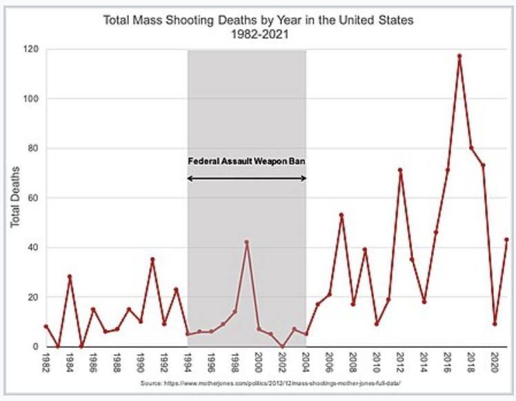 But if that approach will help, how did this trend of school shootings START in the middle of the 1992 assault weapons ban? There must be something else going on.