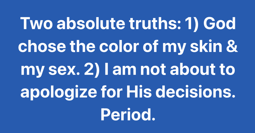 Gee, I don’t think anyone asked you to apologize for how you were born. What you’ve become since then, well, that’s on you.
