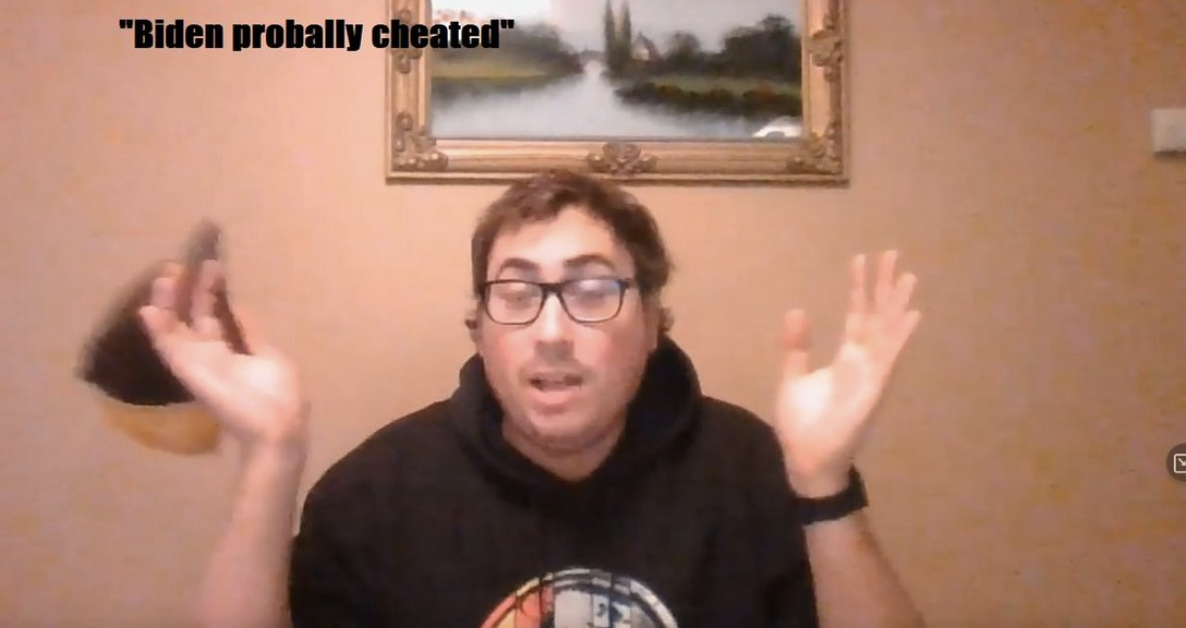 This is a screenshot of a Sammis video clipped and saved by a diligent citizen. In it, Sammis says “Biden probably won. [whispers] Biden probably cheated.” Yep, he’s an election truther. Which makes sense, because he endorsed fellow election truther Gregory Thayer’s bid for lieutenant governor. That’s the Gregory Thayer who organized a bus trip to the January 6 insurrection.