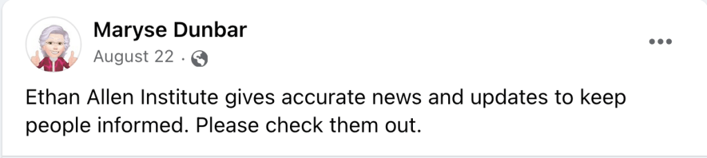 Dunbar’s campaign website and her campaign Facebook page are much milder stuff. She’s against a carbon tax. She says we need to do more to fight crime. She’s big on fiscal responsibility. And she’s really upset about Vermont’s tax on military pensions, which is probably the only thing she has in common with Phil Scott. Besides, you know, being on the same ticket.