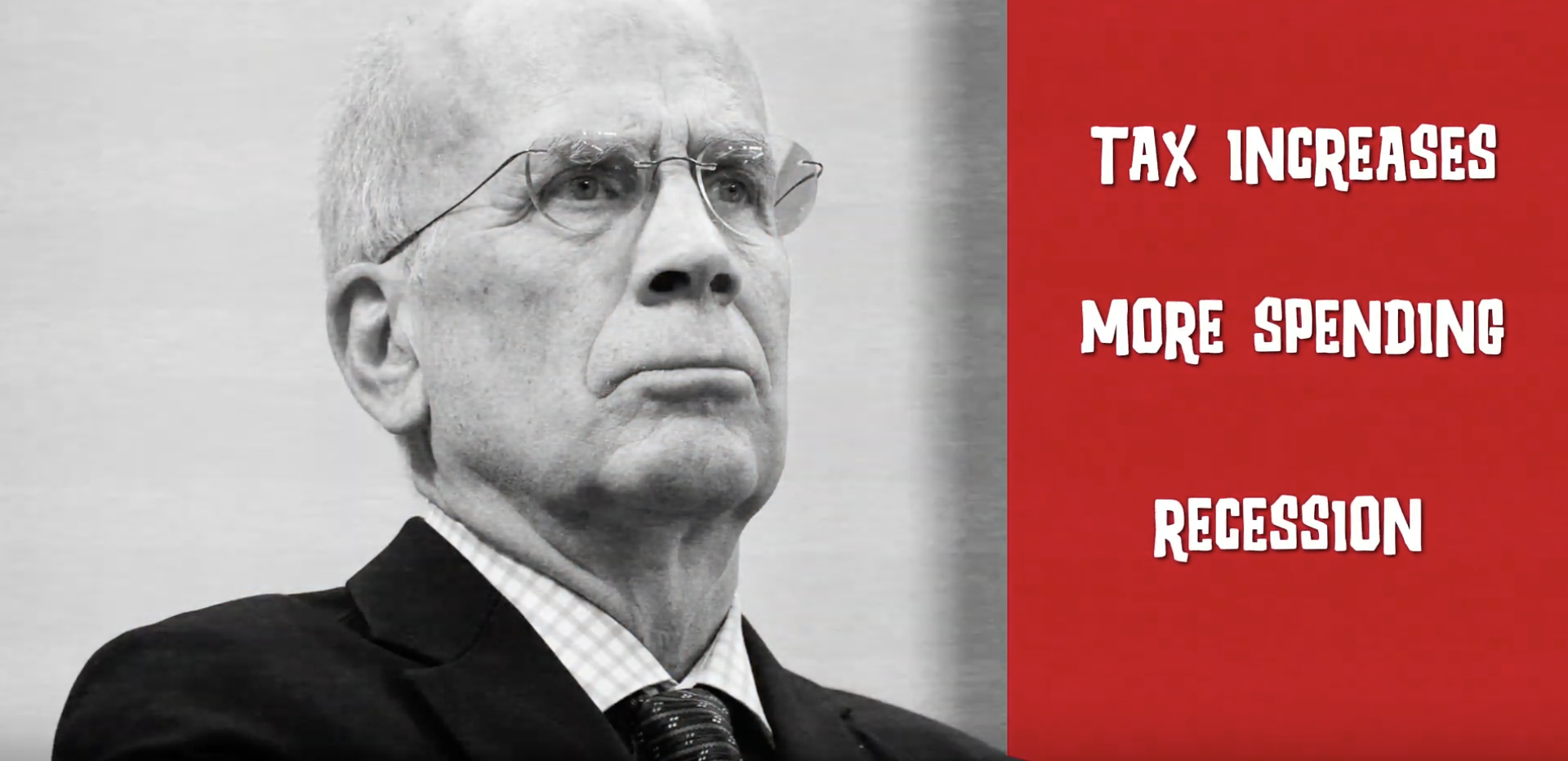 At least he’s not pretending to shoot liberals or some such. This ad also features the breath-free narration, but fills the first four seconds with a full-screen image of an American flag. Sure he wants to accentuate his patriotism, but four seconds is an eternity in a short TV spot. It just seems like poor editing.
