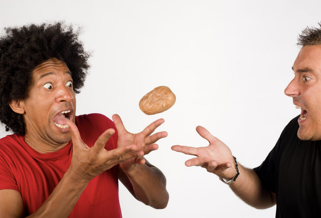 The player on the left is the Vermont Legislature. The player on the right is Gov. Phil Scott. The potato in question is the emergency motel voucher program for the unhoused.