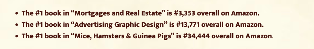 Eagar doesn’t think much of Amazon’s category rankings, either. He cites a few examples: