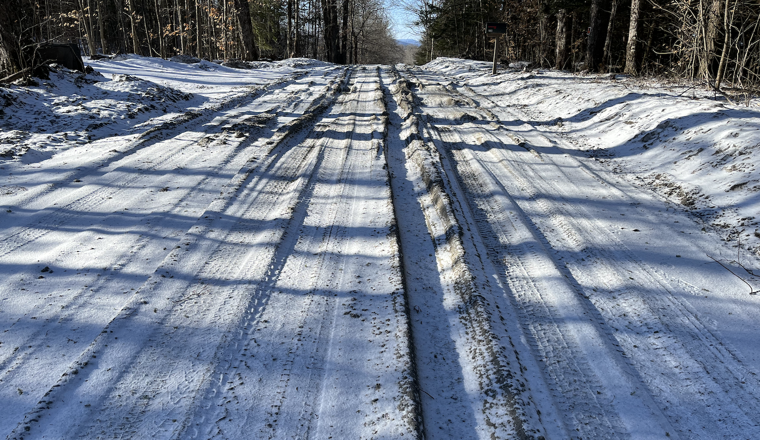 Got a bad case of climate dysphoria today. It’s about 40 degrees colder than yesterday; Burlington saw new record high temperatures each of the past two days; in less than 24 hours we went from flood watch to gale force winds to freezing cold; and the newly-formed ruts on my dirt road have frozen into fascinatingly unpredictable configurations. It’s like art that can screw up your suspension.