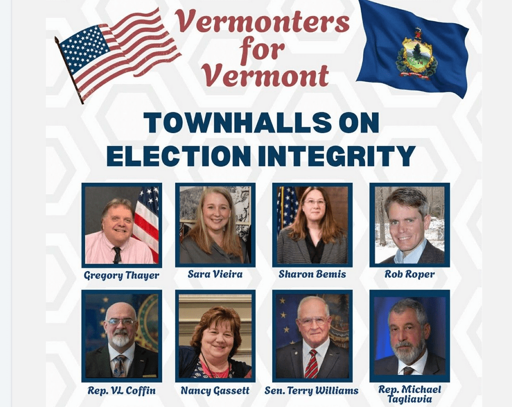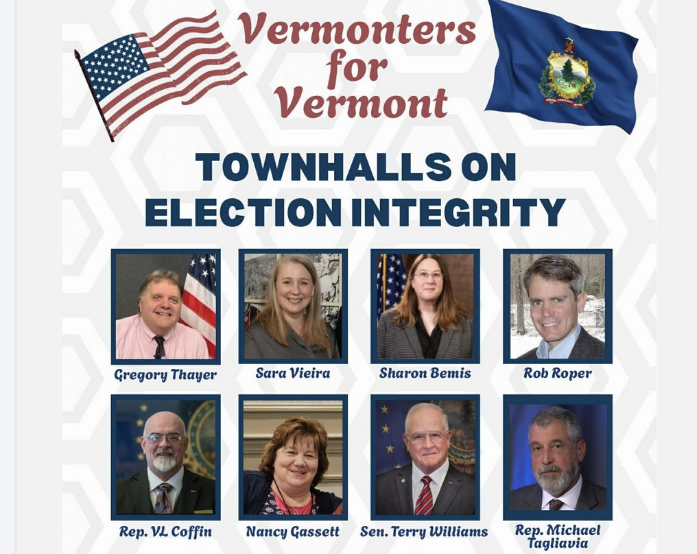The guy gets around. And here he comes again, with a pair of “Townhalls” (sic) next week in Chester and Montpelier on the subject of ELECTION INTEGRITY, a.k.a. them damn Democrats are tryin’ to steal the vote!!! And just look at this Murderers’ Row of participants.