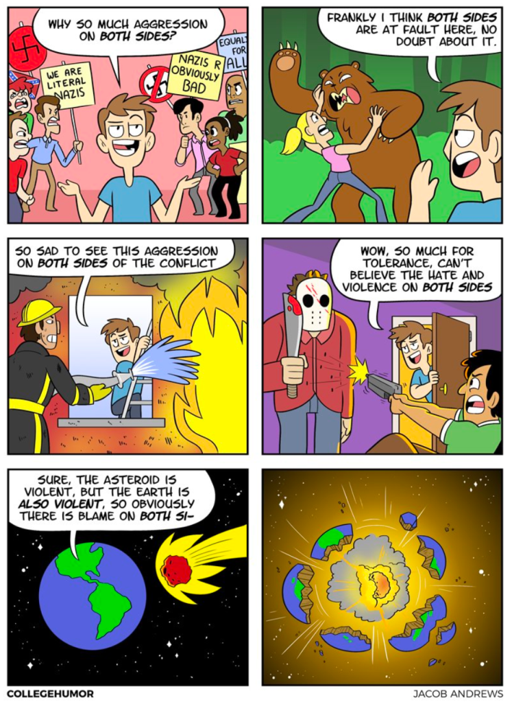 Plenty of truth there. Intolerance does exist on both sides. But it is far from evenly distributed. The vast majority of the intolerance, hate, and conspiracy thinking is on the right.