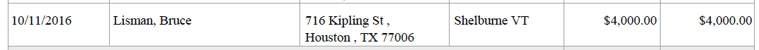 This is taken from the latest campaign finance filing of Common Sense Leadership PAC, House Minority Leader Don Turner’s slush fund political action committee. It indicates that one Bruce Lisman made a donation of $4,000 to CSLPAC on October 11.